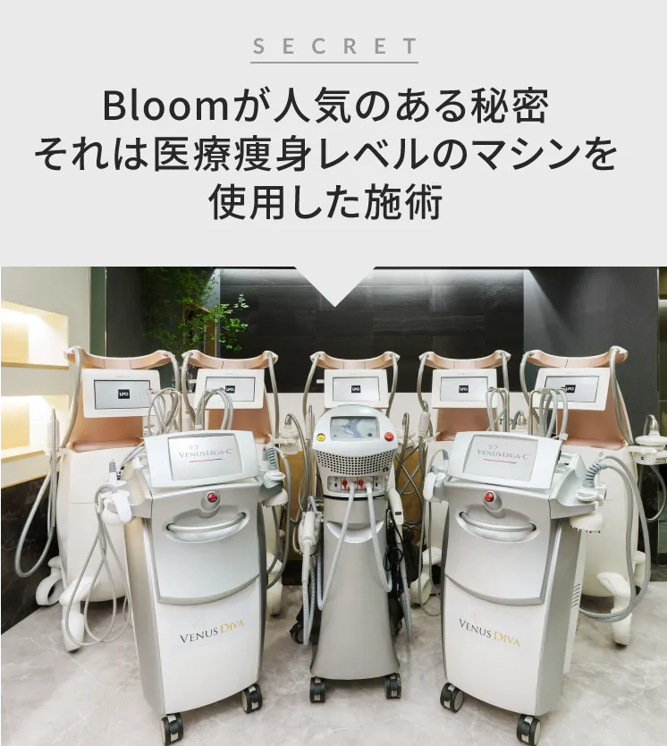 Bloomのエステで使用するマシンは、医療痩身レベルの最新痩身機器。